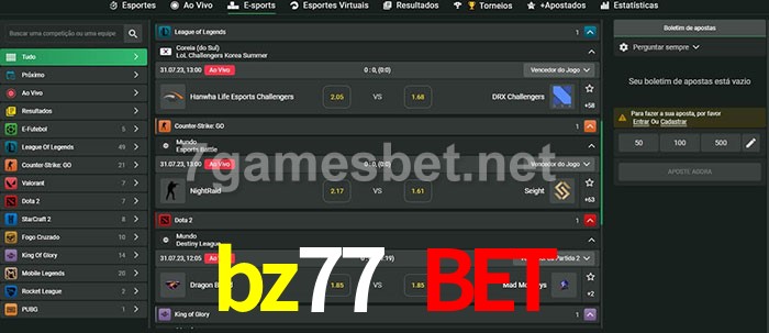 O bz77 bet oferece uma grande seleção de opções de apostas em e-sports com probabilidades competitivas